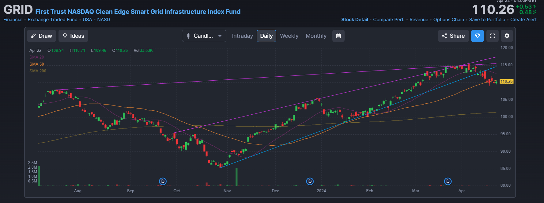 3. 퍼스트 트러스트 나스닥 클린 에지 스마트 그리드 인프라 인덱스 펀드 (First Trust NASDAQ Clean Edge Smart Grid Infrastructure Index Fund : GRID)
