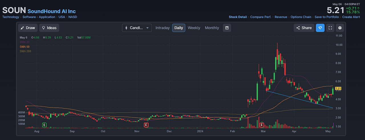 사운드하운드는 인터랙티브 AI 분야를 선도하는 기업입니다. 이 분야의 급성장이 전망되는 가운데, 실시간 번역 및 애플리케이션을 가능하게 하는 첨단 음성 인식 및 텍스트-음성 변환 기능을 제공합니다. 사운드하운드의 기술은 식당, 자동차, 대형 고객 지원 센터 등 다양한 분야에서 적용되어 폭넓은 고객층을 확보하고 있습니다.