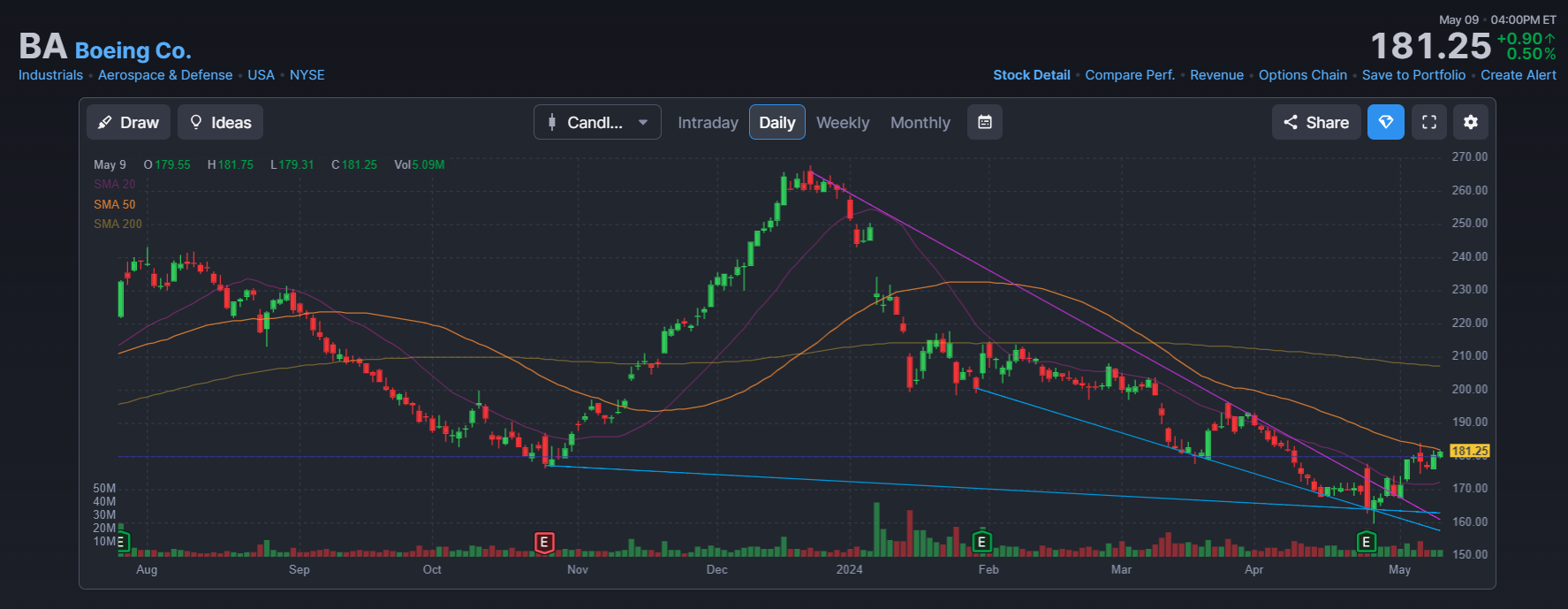 - 보잉 (BA)은 현재 여러 가지 문제에도 불구하고 장기적으로 회사의 가치가 회복될 것이라는 점에 투자할 수 있습니다.
