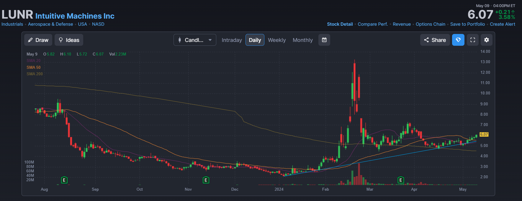 인튜이티브 머신즈 (Intuitive Machines Inc, LUNR) 최근 주식 차트