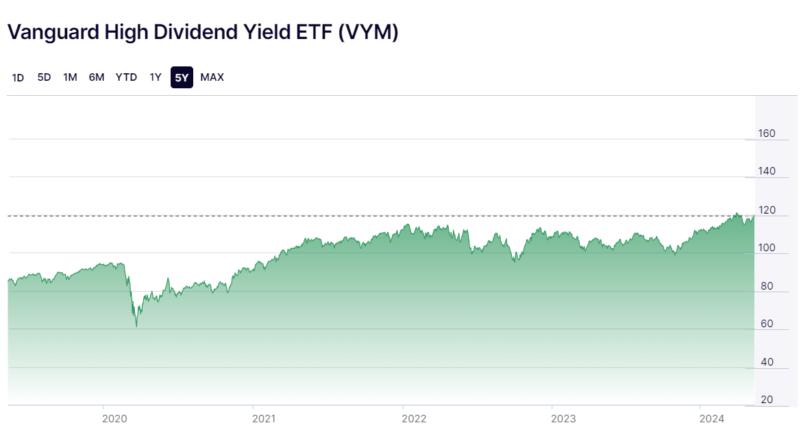 Vanguard High Dividend Yield ETF는 배당금을 통한 안정적인 수익을 추구하는 투자자에게 좋은 선택입니다. 평균 이상의 배당 수익률을 가진 대형주로 구성되어 있으며, 현재 수익률은 S&P 500의 두 배 이상입니다. 11개 주요 섹터의 기업을 포함하지만, 금융, 산업, 헬스케어 섹터에 집중되어 있습니다. 배당주 투자는 주가 성과와 관계없이 투자자에게 보상을 제공하며, 낮은 비용 비율은 투자자에게 더 많은 수익을 안겨줍니다.