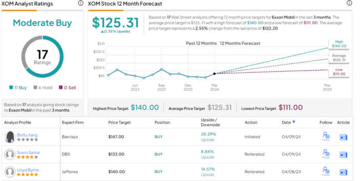 Jiang은 내년을 전망하며 XOM을 "초과중립(매수)"으로 평가하고 주가 목표를 147달러로 책정했으며, 이는 향후 12개월간 20% 상승할 가능성이 있음을 의미합니다.