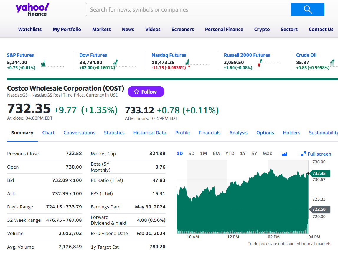 Costco Wholesale Corporation (COST) Stock Price, News, Quote & History - Yahoo Finance