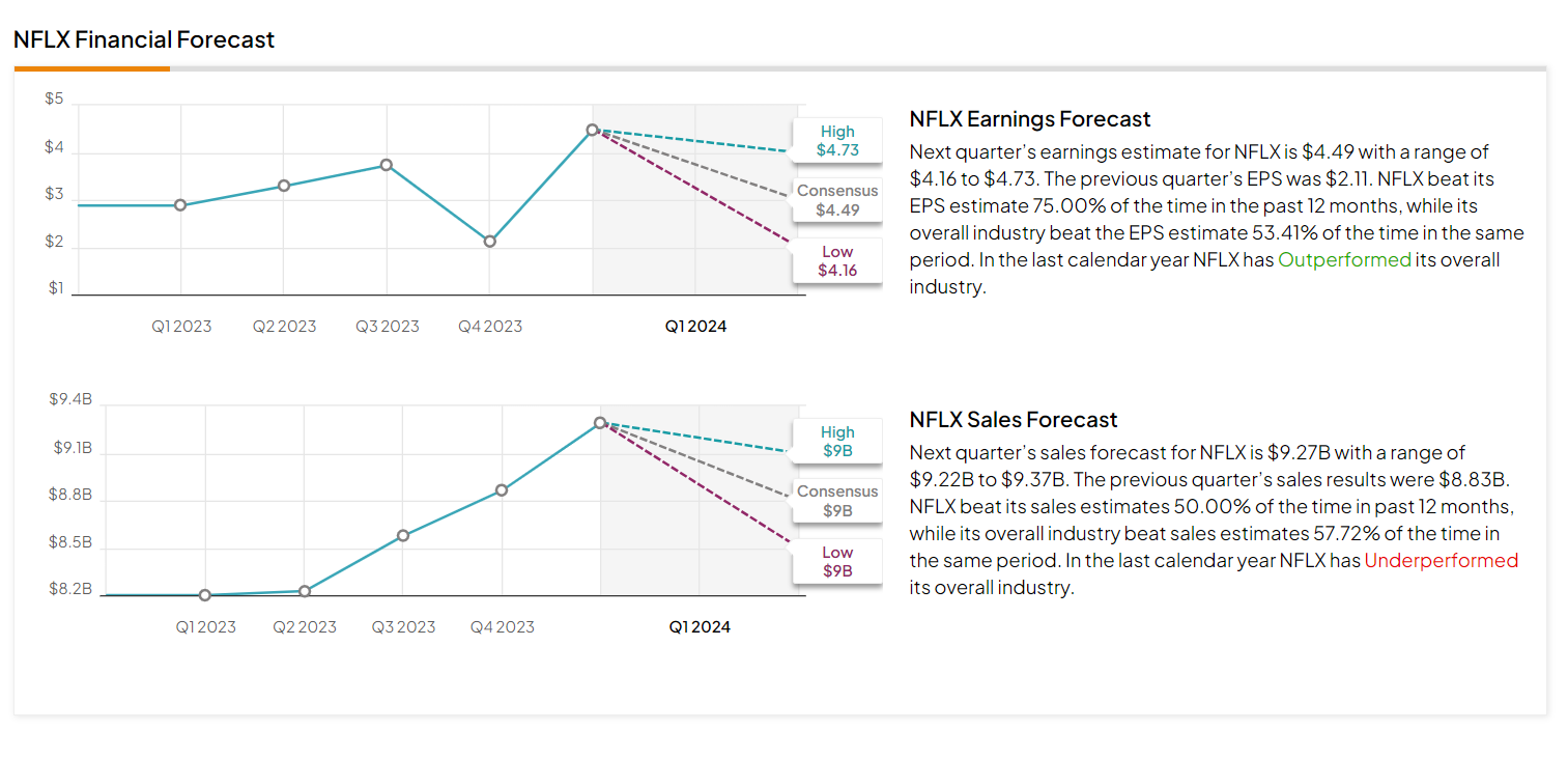 애널리스트들은 Netflix가 1분기에 488만 명의 가입자를 추가할 것으로 예상합니다. Netflix는 광고 기반 저가의 요금제를 적극적으로 내세우고 있고 불법적인 비밀번호 공유에 대한 단속을 강화하고 있습니다. 이는 유료 가입자 증가에 기여하고 있습니다.