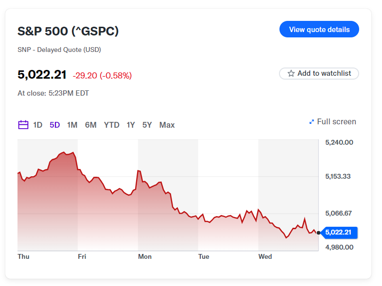 S&P 500 지수가 4일 연속 하락하며 2024년 초 이후 최악의 장기 하락세를 기록하고 있다.