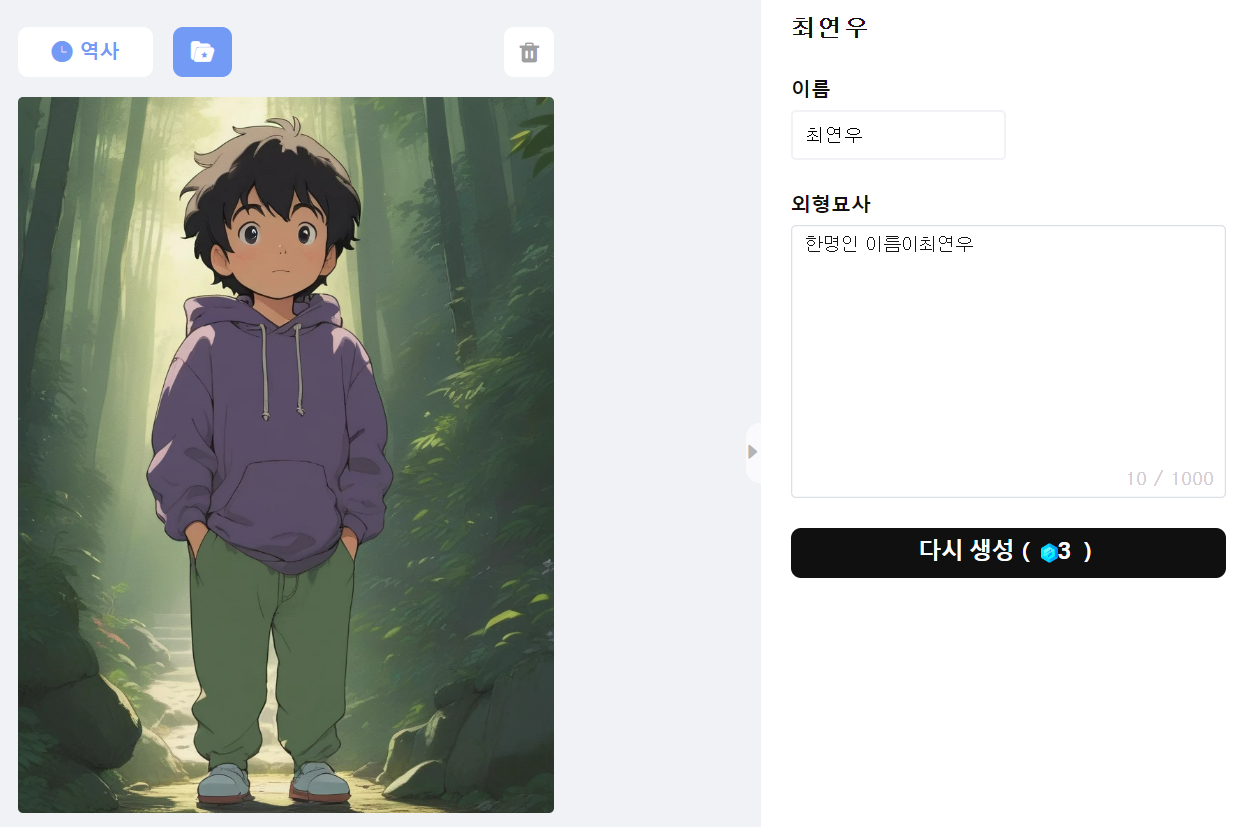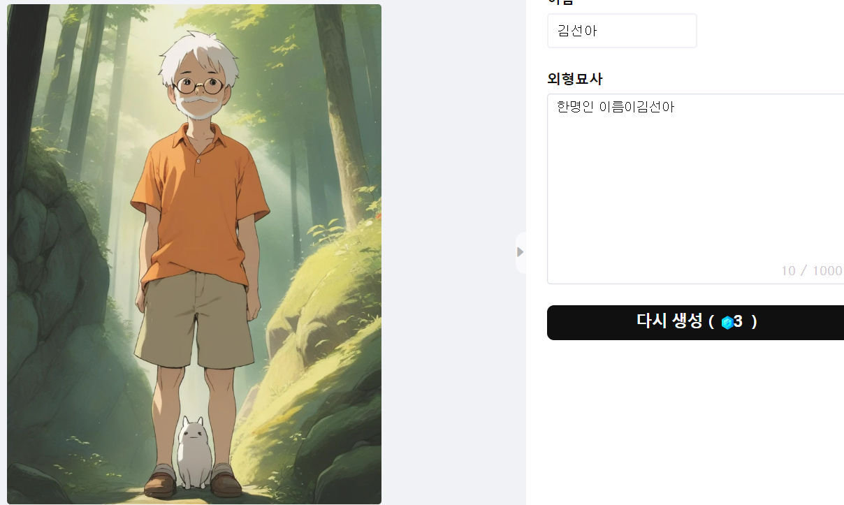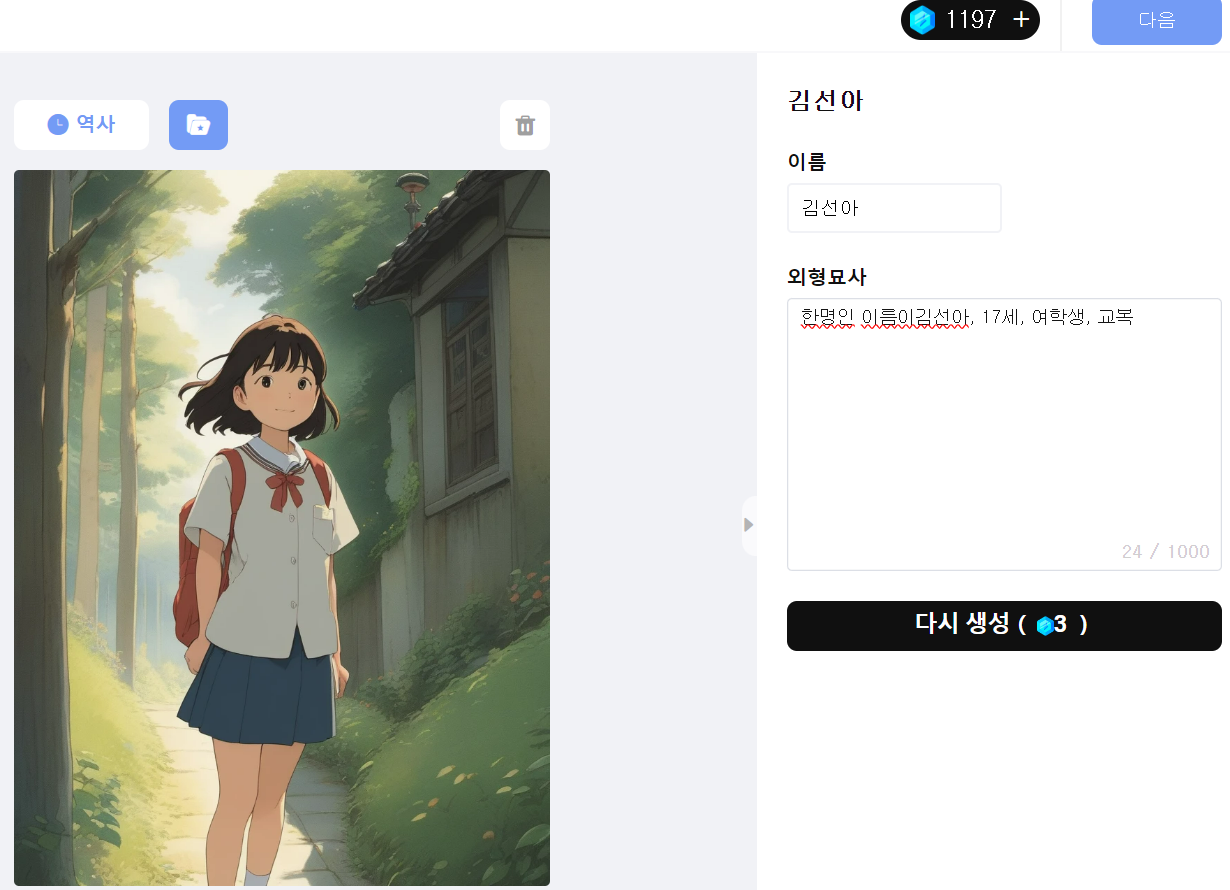 아무래도 다시 생성에 들어가야 할 것 같습니다. 무료로 주는 마나 1200 중, 3 개를 사용했습니다.
