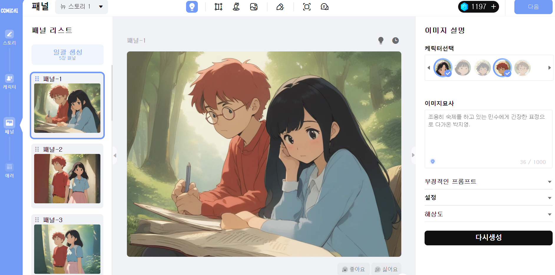Comic AI AI 웹툰 제작 사이트 - 기초 3강 (Comicai로 패널 생성하기)